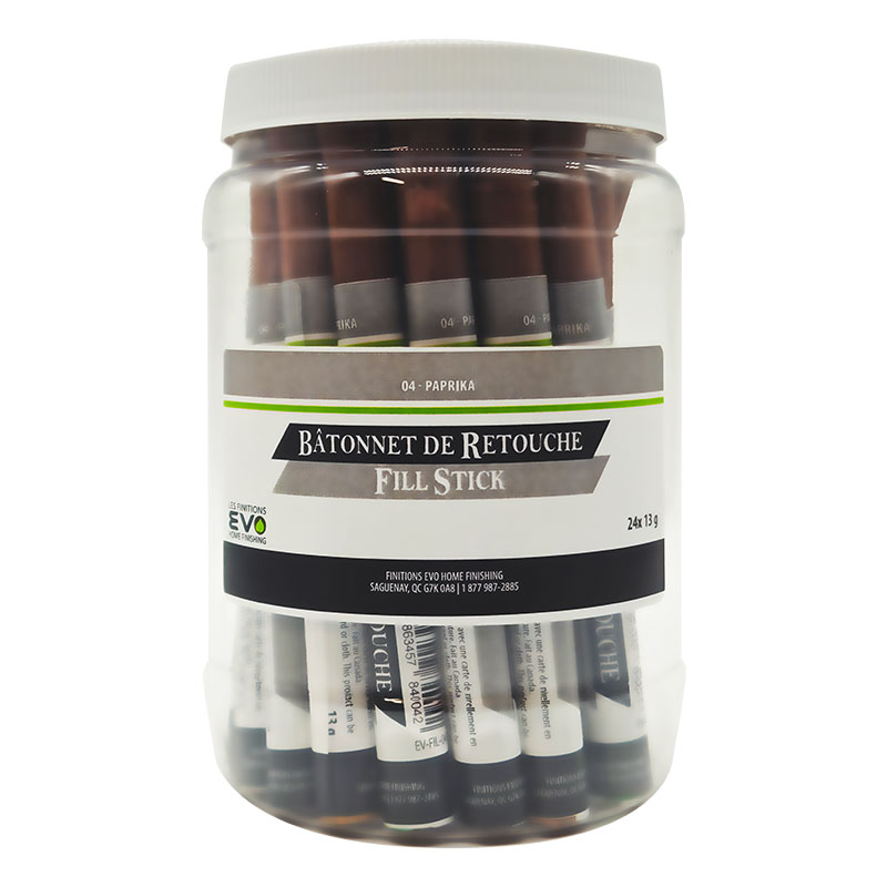 Le Bâtonnet de Retouche EVO est parfait pour corriger les défauts mineurs sur une variété de surfaces telles que les meubles, les armoires, les comptoirs, les planchers, les boiseries, et bien plus encore. Approuvé par les ébénistes, ce produit est idéal pour réparer facilement les imperfections du bois et restaurer avec précision des objets antiques ou artisanaux. Composé à 100% de cires et de pigments de haute qualité, ce bâtonnet de retouche assure une durabilité exceptionnelle en plus d’avoir un excellent rapport qualité-prix. Résistant aux rayons UV, il ne subit pas de décoloration et ne se rétrécit pas dans le temps, garantissant ainsi des réparations durables. Que ce soit pour combler les trous de clous, les fissures, les entailles, les égratignures, les cavités ou les petits interstices, le Bâtonnet de Retouche EVO est la solution recommandée pour la plupart des petites réparations. Facile à utiliser, il est prêt à l’emploi sans nécessité de chauffage préalable. Son application est simple : il suffit de frotter la surface à réparer avec le bâtonnet, puis d’éliminer l’excédent à l’aide d’un chiffon, d’un couteau à mastiquer ou d’une carte de nivèlement en plastique. Disponible en 24 couleurs populaires, choisissez simplement celle qui se rapproche le plus de votre surface à réparer pour un résultat optimal. Si votre projet implique plusieurs réparations sur des surfaces en bois, découvrez également notre Bouche-Pores & Pâtes à Bois EVO !
