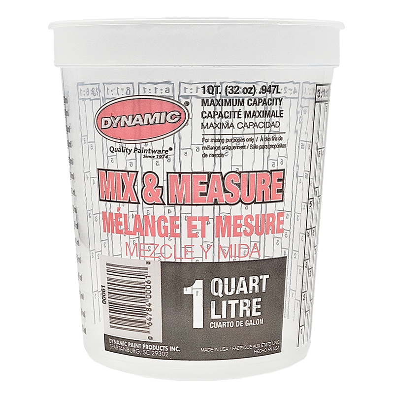 Les contenants en plastique avec graduations ont un fond plat pour permettre un mélange facile. Les mesures inscrites sur le contour sont impériales et métriques. Ces contenants résistants aux solvants sont sans danger pour les peintures, les pâtes et les adhésifs. Ils sont réutilisables et recyclables. Le récipient est transparent pour vous permettre de bien voir les liquide.