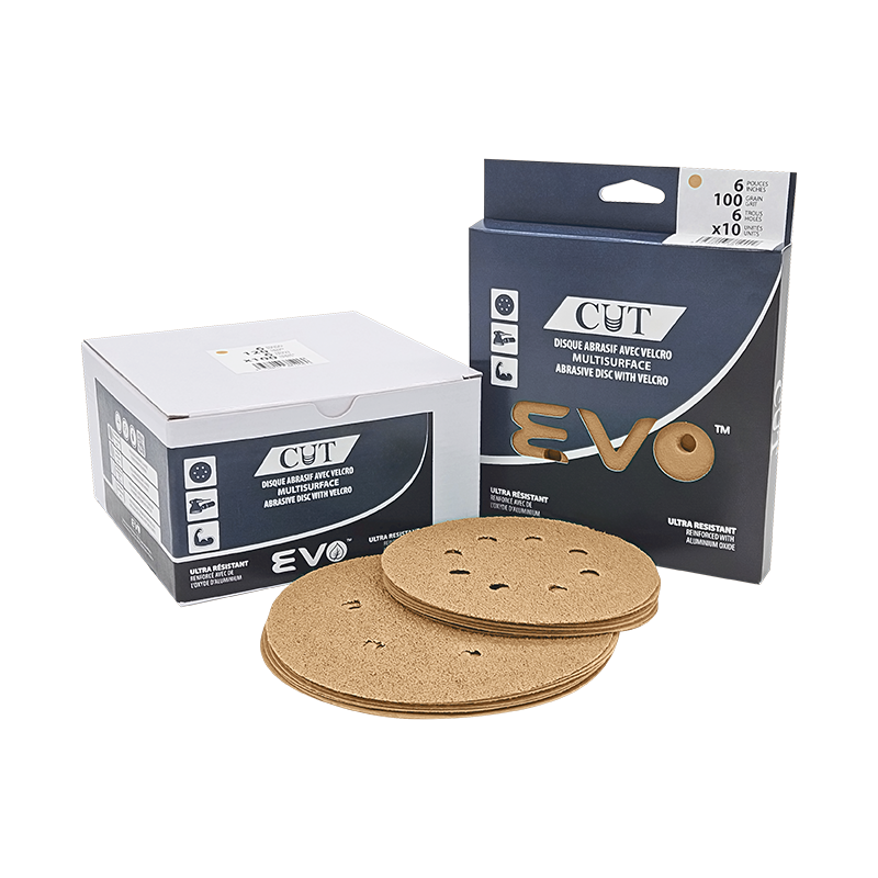 Le disque abrasif EVO™ CUT est un papier de ponçage de haute efficacité conçu avec des matériaux de qualité supérieure procurant une durée de vie prolongée. Celui-ci peut être utilisé sur plusieurs types de surfaces comme le bois et les métaux pour des utilisations autant résidentielles que commerciales. Les grains abrasifs tranchants renforcés d’oxyde d’aluminium sont disposés uniformément sur le support de manière à créer un ponçage rapide, lisse et uniforme. De plus, l’endos du disque abrasif EVO™ CUT est constitué d’un papier renforcé de latex et est fixé par une résine phénolique pour ainsi diminuer les déchirures, éviter les décollements prématurés et augmenter la performance. Ce disque abrasif est autoaggripant (Velcro) et est compatible avec les blocs à poncer, les ponceuses orbitales électriques et pneumatiques. Il est disponible dans les grains 40 à 320 pour retirer la matière, préparer la surface avant la finition ou même pour dépolir et corriger. Ce produit est donc un choix judicieux pour les bricoleurs et les professionnels désirant le meilleur rapport qualité-prix et aussi, un abrasif plus durable.